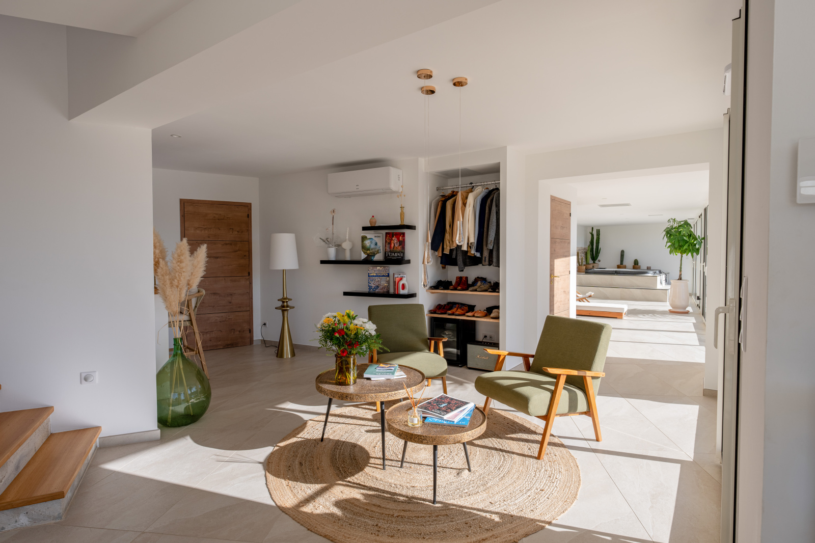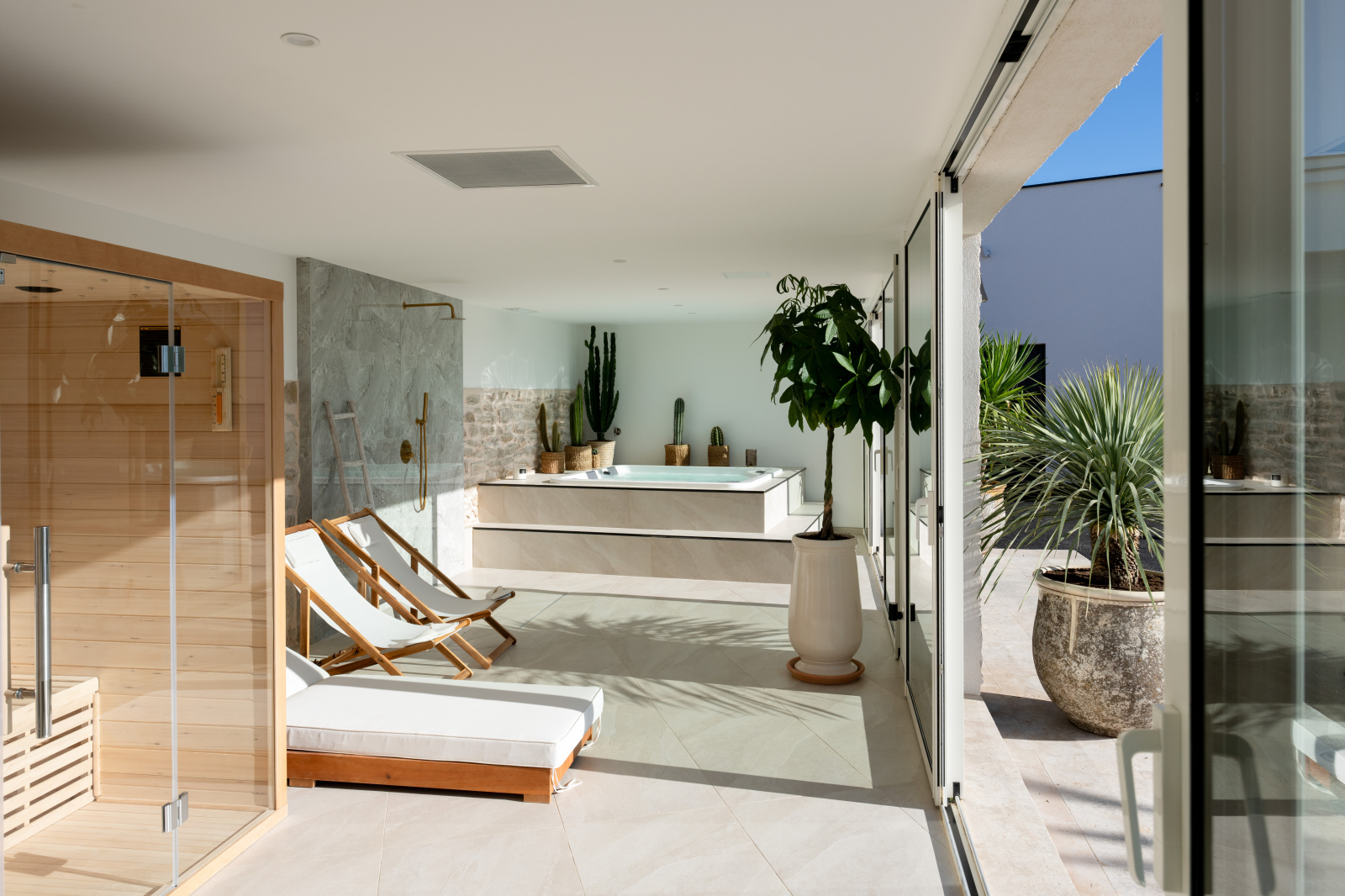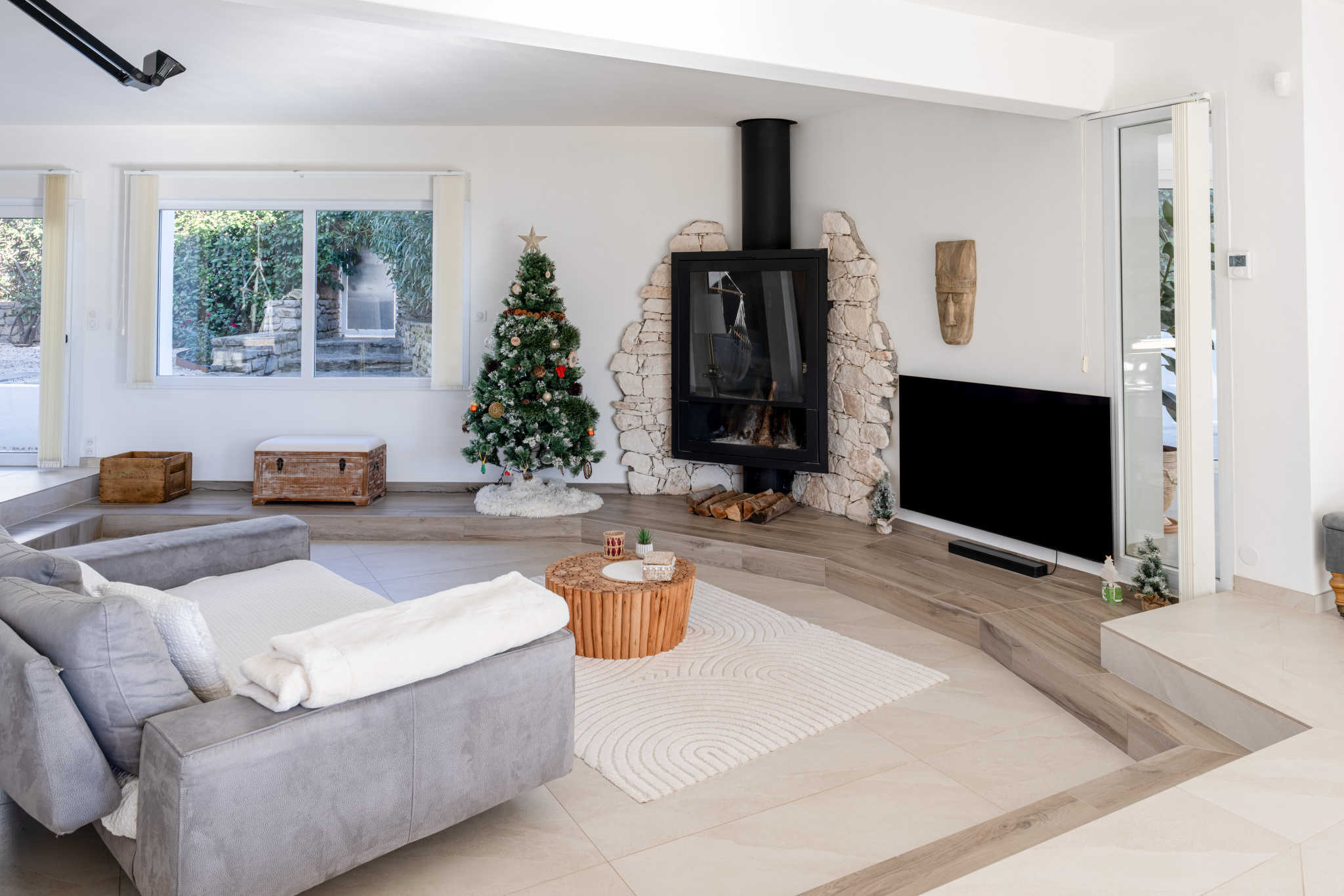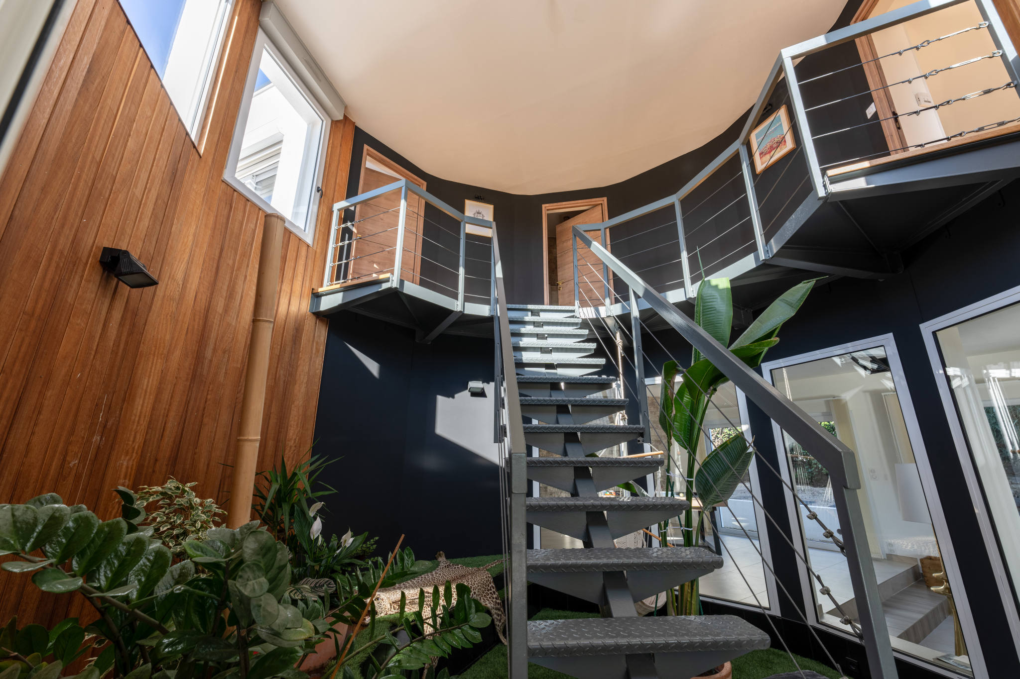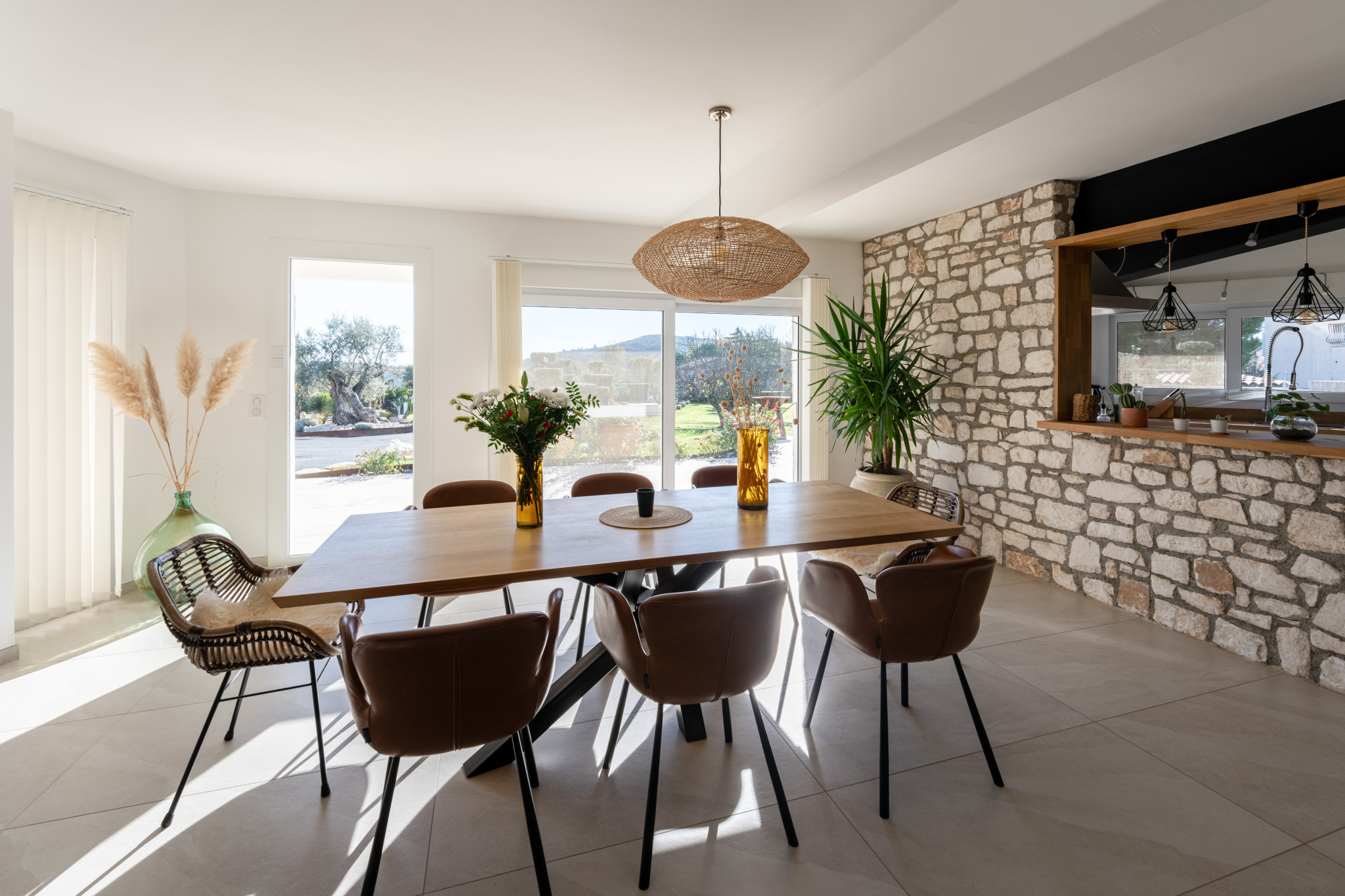 Articulée autour d'un patio intérieur tel un jardin d'hiver, cette contemporaine dispose d' une pièce de vie traversante de 175 m² longeant toutes les terrasses séparées par d'interminables baies vitrées, promettant une sensation de sérénité. Elle aboutit à un espace détente spa au design épuré et reposant. La cuisine aménagée et équipée bénéficie d'une arrière cuisine plus cellier buanderie.