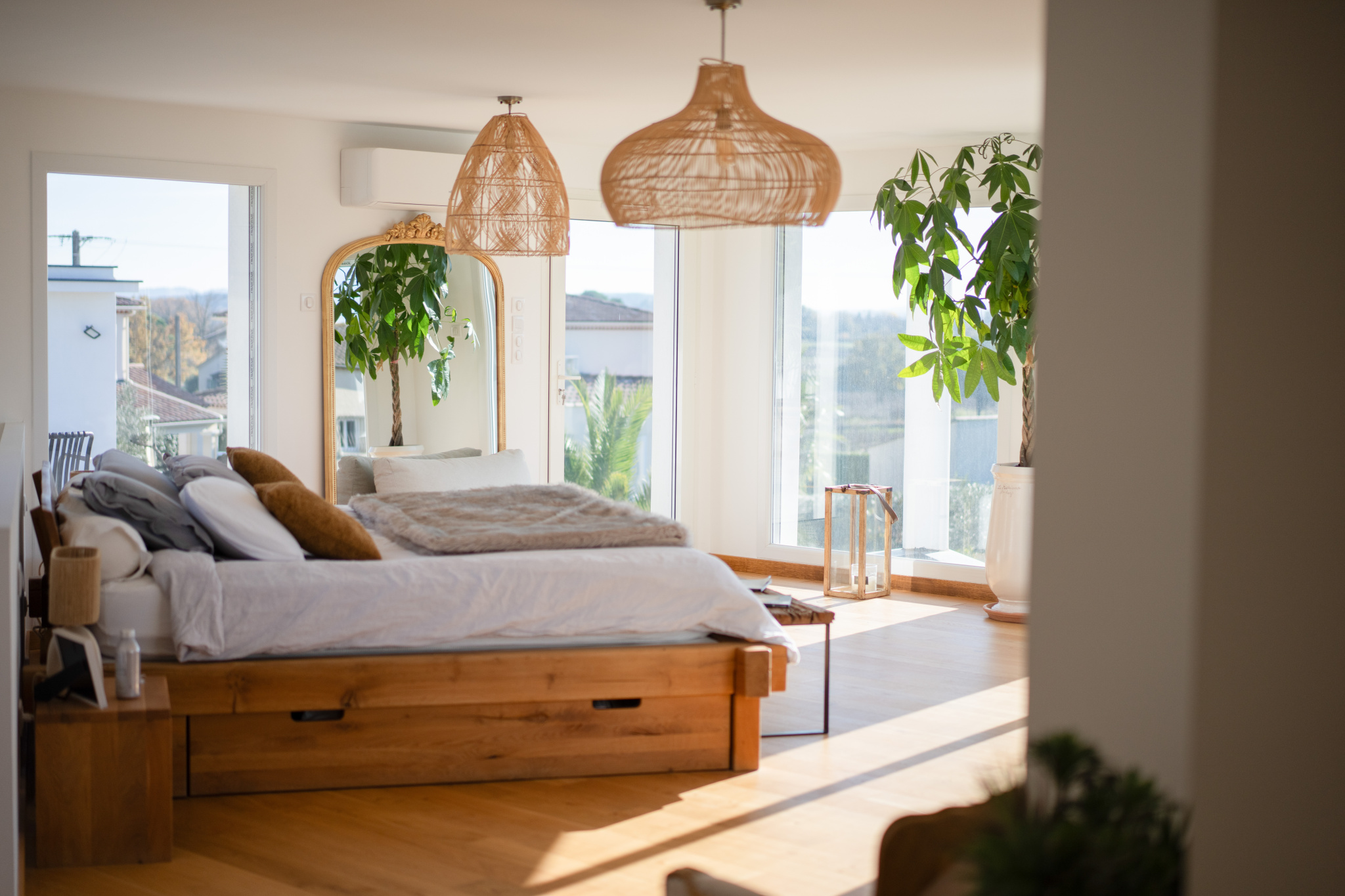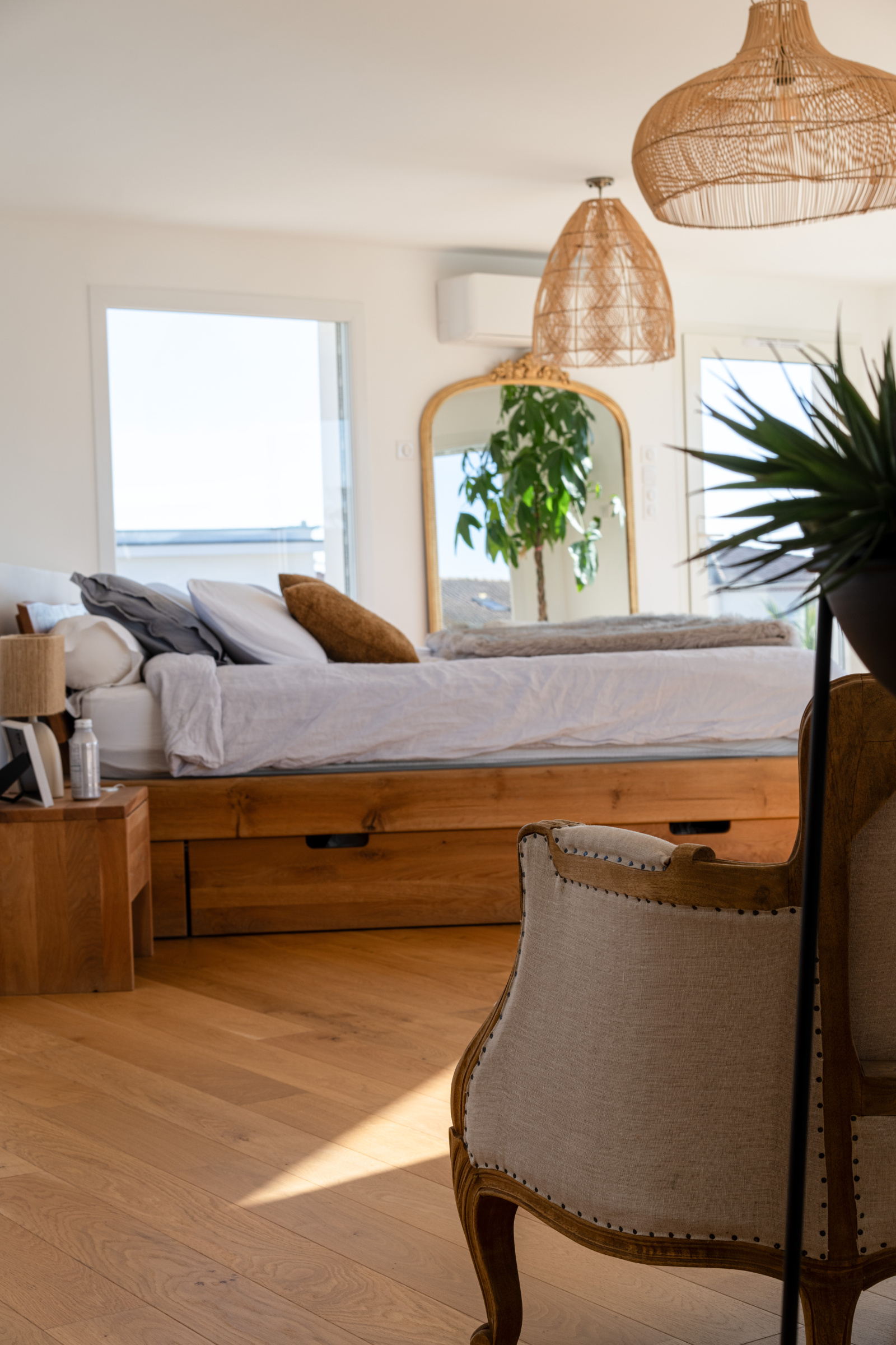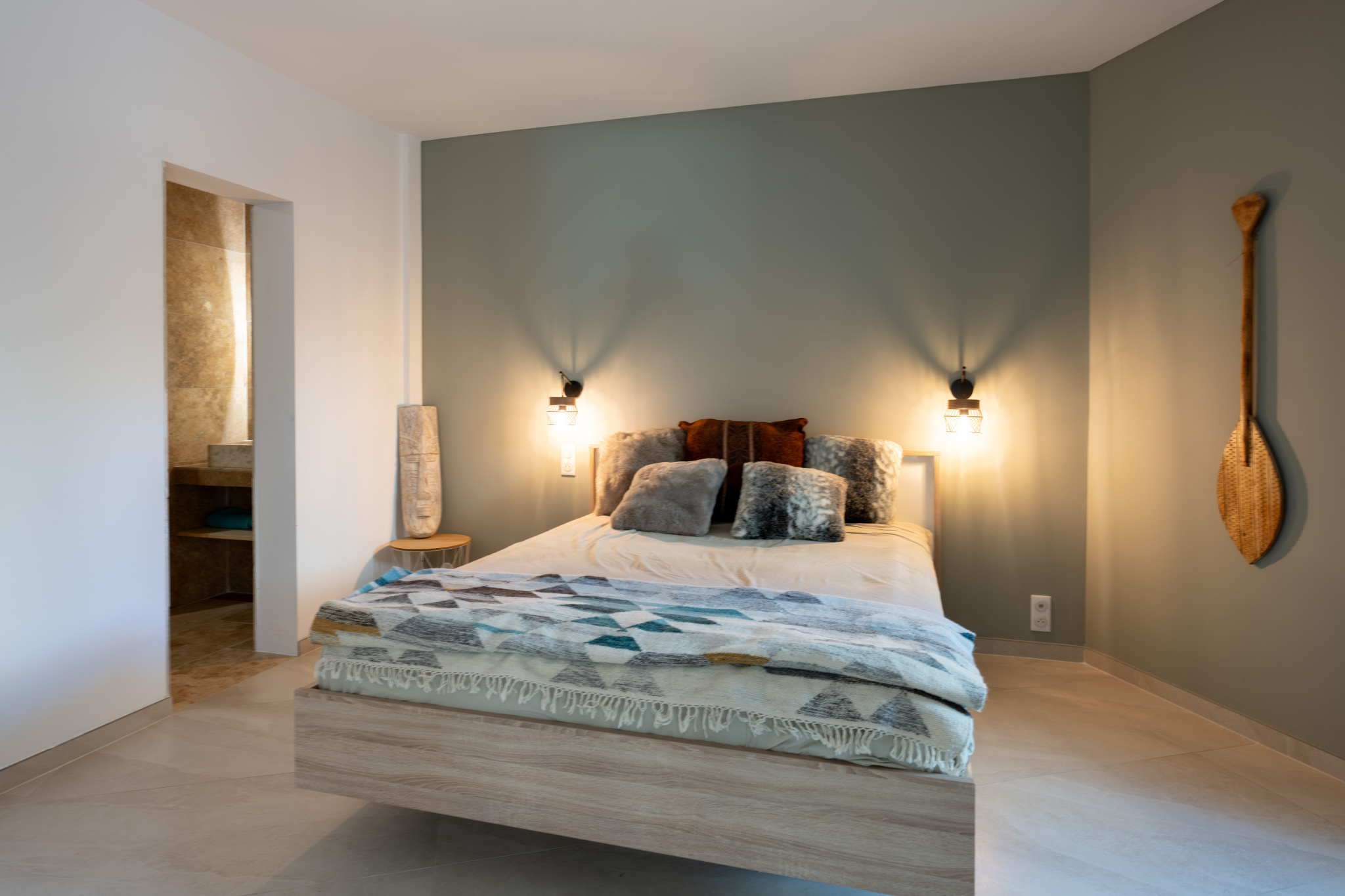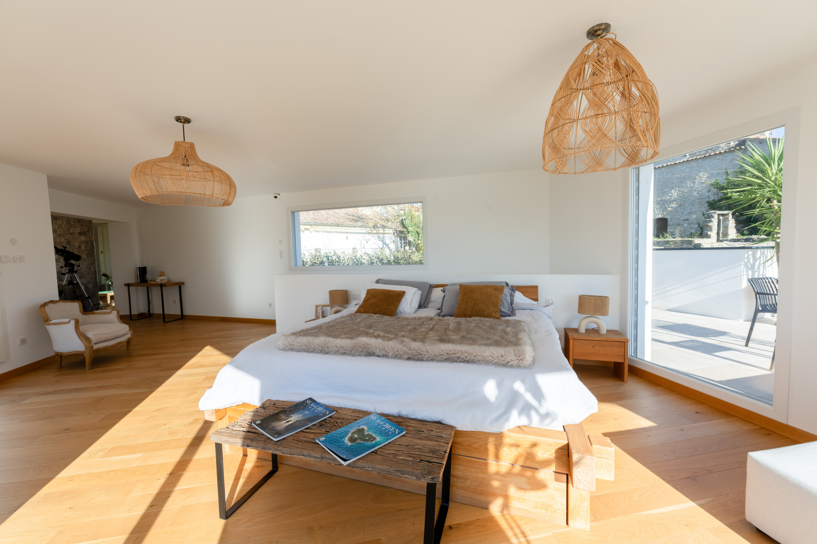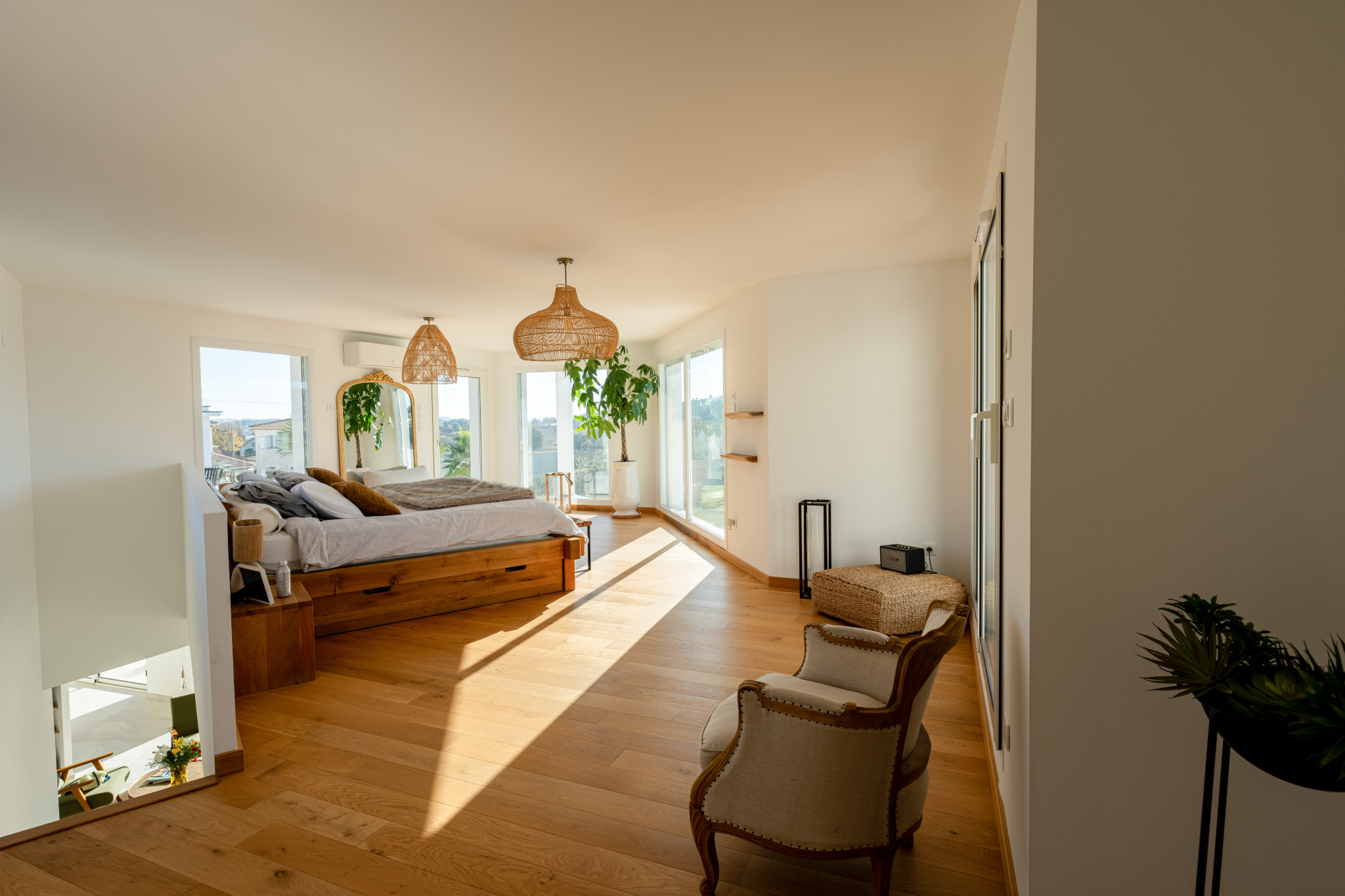 Trois chambres type suite dont une en rez de chaussée. La chambre parentale de l'étage est bluffante : elle offre le luxe d’un salon privé, d'une salle de bain avec baignoire et douche, d’un dressing et de deux terrasses paysagées absolument merveilleuses.