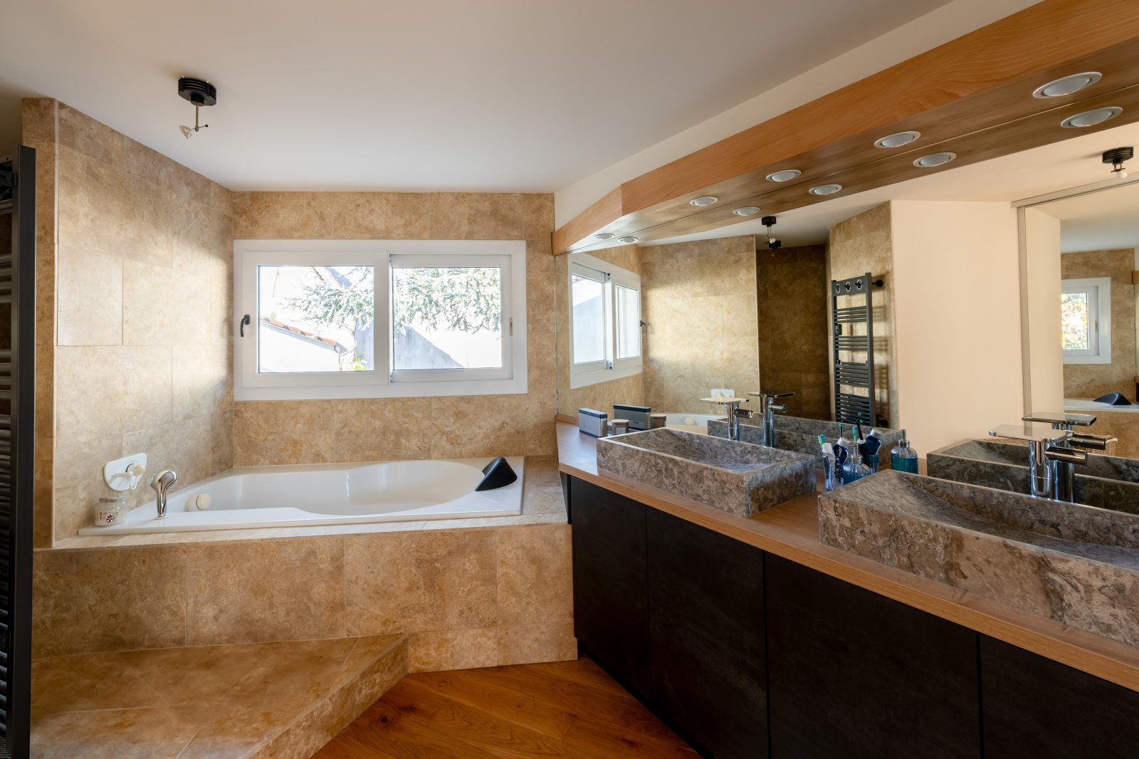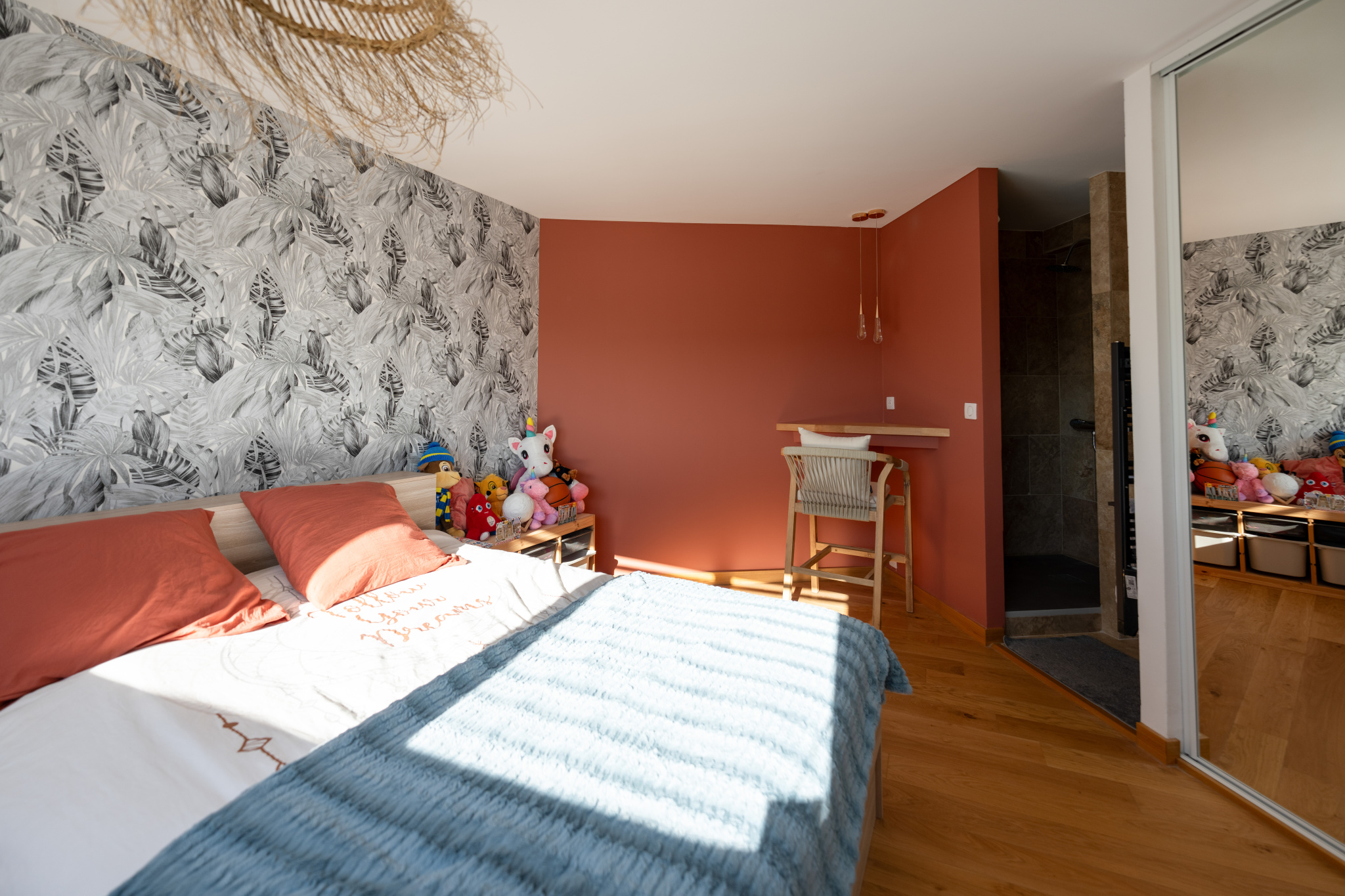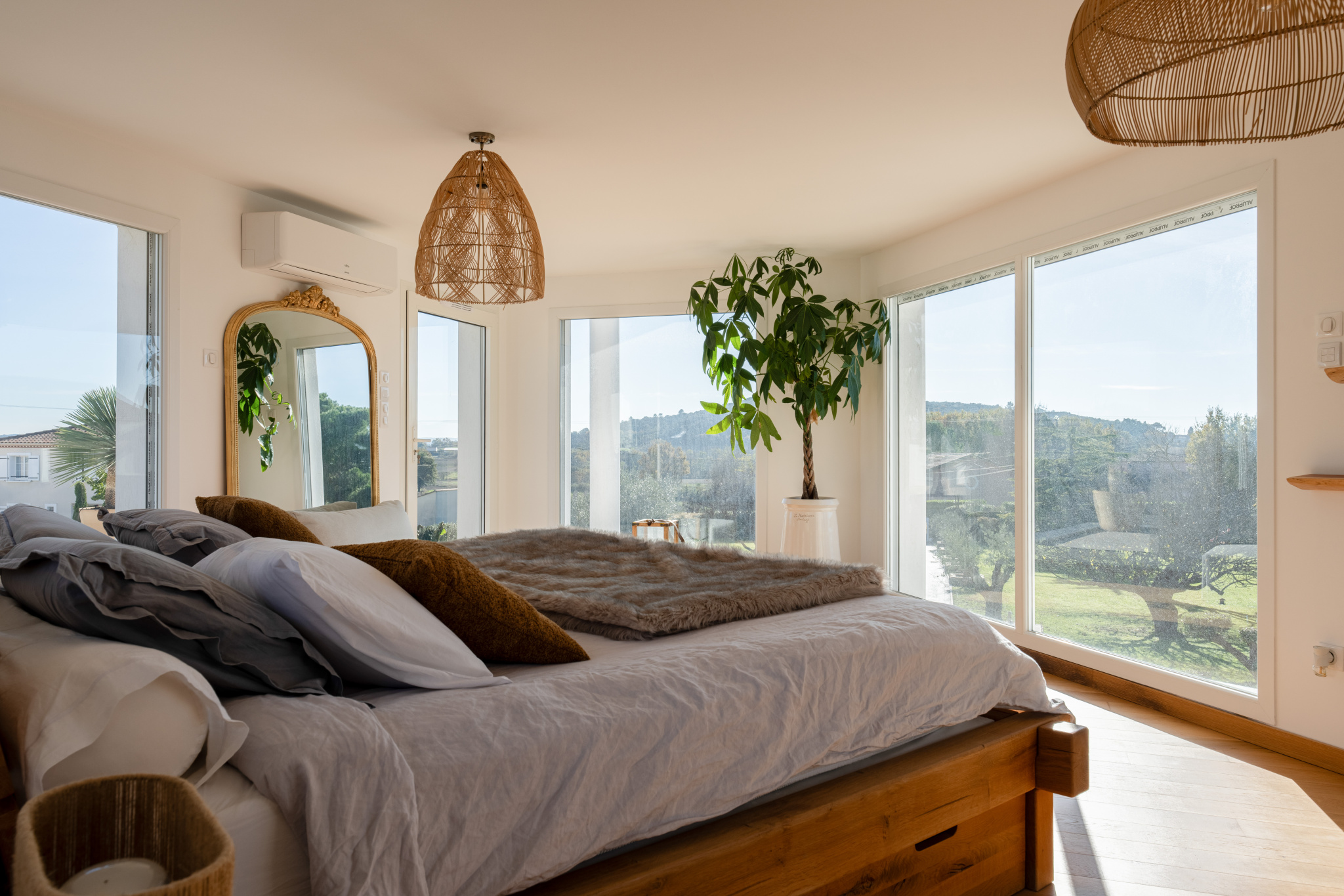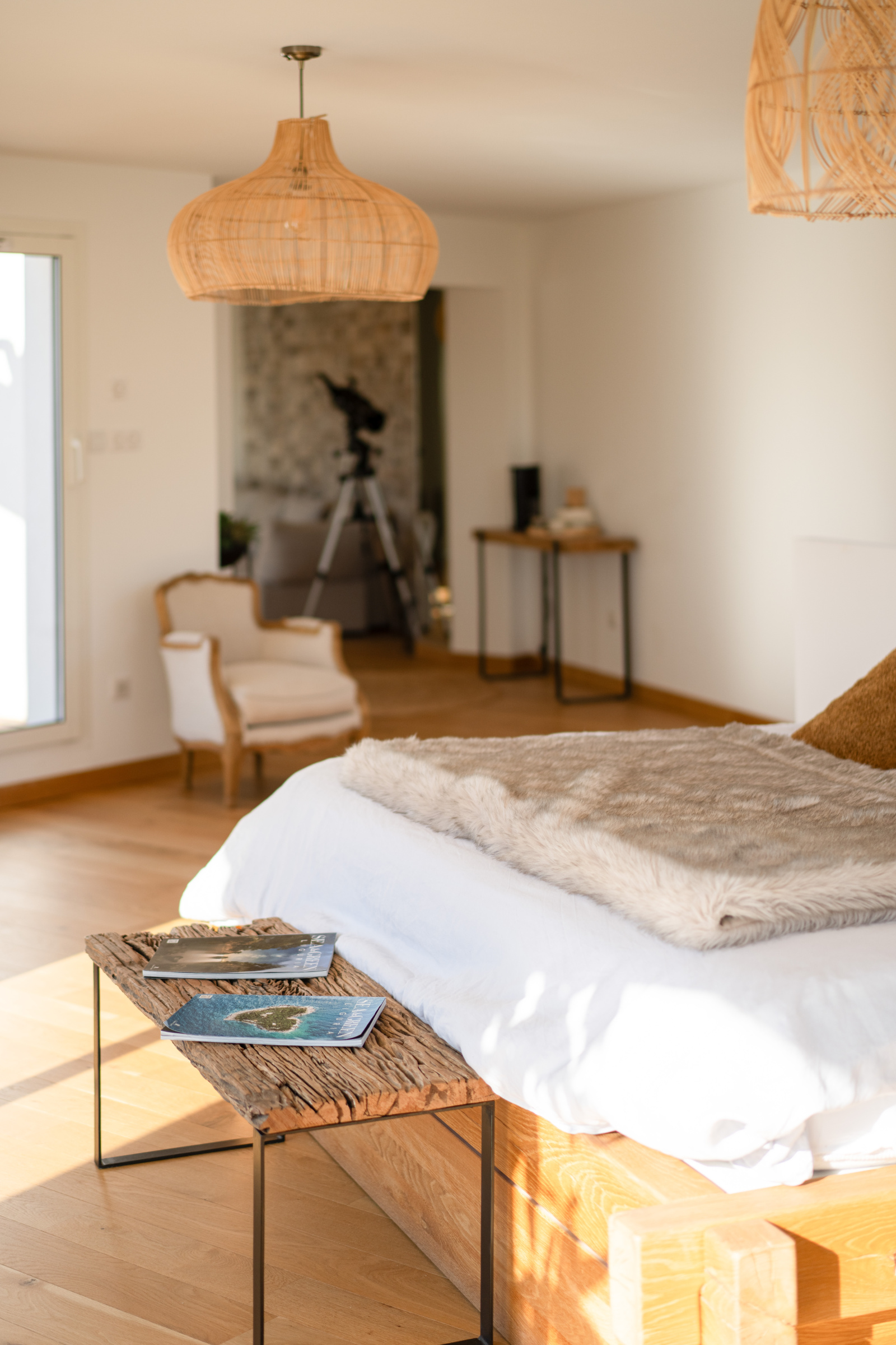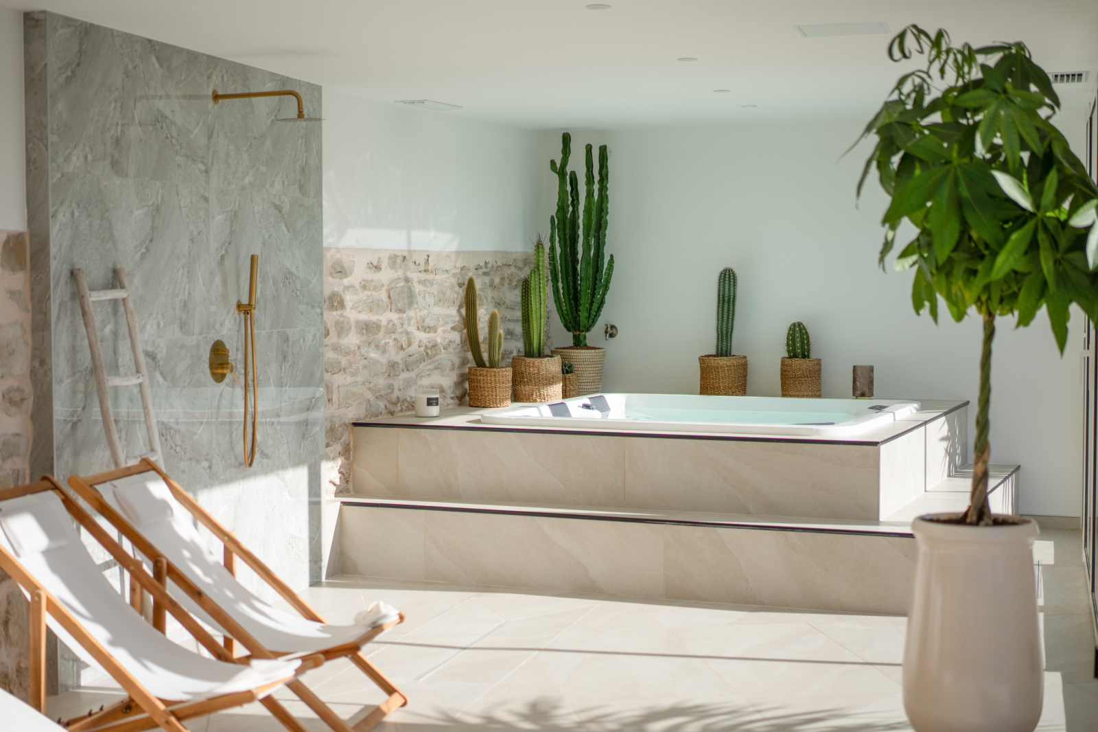 Trois chambres type suite dont une en rez de chaussée. La chambre parentale de l'étage est bluffante : elle offre le luxe d’un salon privé, d'une salle de bain avec baignoire et douche, d’un dressing et de deux terrasses paysagées absolument merveilleuses.